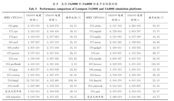 那麼龍芯3A4000處理器小幅改進之後的性能提升有多大呢?事實上龍芯官方很早也公佈該龍芯3A4000的性能水平了,龍芯首席架構師胡偉武博士在今年初的期刊下介紹過龍芯3A4000處理器的性能測試,測試是在FPGA仿真平台上進行的,模擬3A4000和3A3000的主頻均為1GHz,內存控制器頻率均為500 MHz,結果如下: