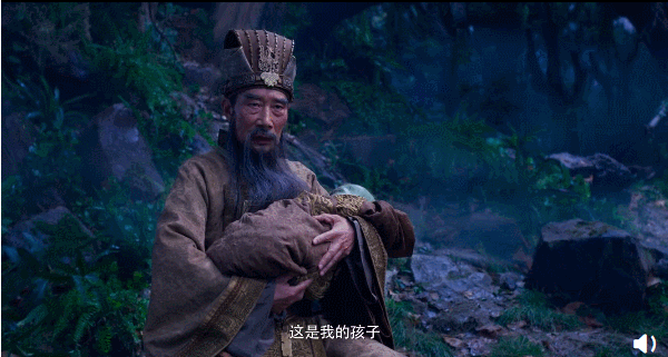 接着,畫面切換到西伯侯姬昌(李雪健飾),他在山林中懷抱嬰兒的神秘姿態與犀利眼神,令人印象深刻。