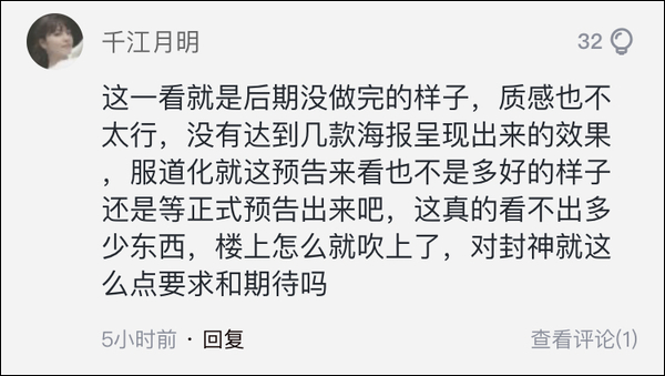 但也有網友覺得:預告質感不行,特效有點廉價,沒看到史詩氣質。