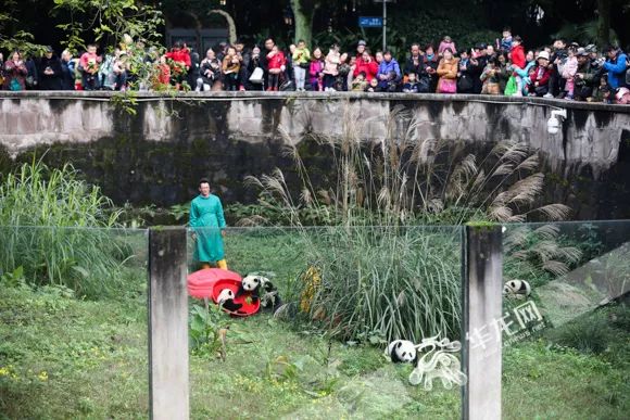 華龍網12月22日消息,轉眼間,重慶動物園的四隻熊貓寶寶雙雙、重重、喜喜、慶慶已經滿半歲了。今(22)天上午,在重慶市動物園舉行慶大熊貓幼仔半歲暨繪畫活動頒獎儀式上,四隻可愛的熊貓寶貝們的集體亮相,活潑打鬧的樣子把現場遊客們的心都“融化”了。