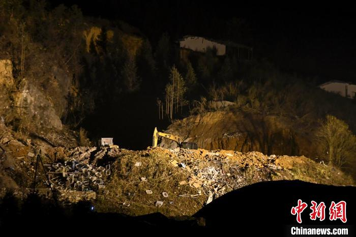 挖掘機和工作人員在清理現場 圖源:中新網 楊華峯 攝