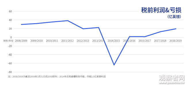 樂購大規模砍掉海外業務與財務作假事件後,該集團税前利潤從2013財年的22.59億英鎊,變為截至2015年3月31日2014財年的税前虧損63.67億英鎊。