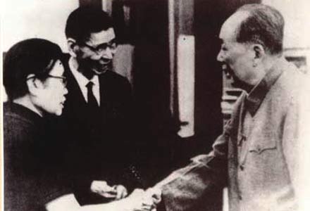 毛澤東主席會見應邀回國訪問的美籍華人李振翩教授夫婦