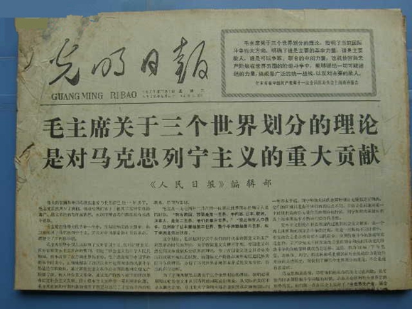 這份報告首次提出,國際上兩大階級的對抗,集中地體現為中、美、蘇三大力量之間的鬥爭。這既不同於第二次世界大戰以前的‘七強’並立,也不同於戰後初期的美蘇對峙。