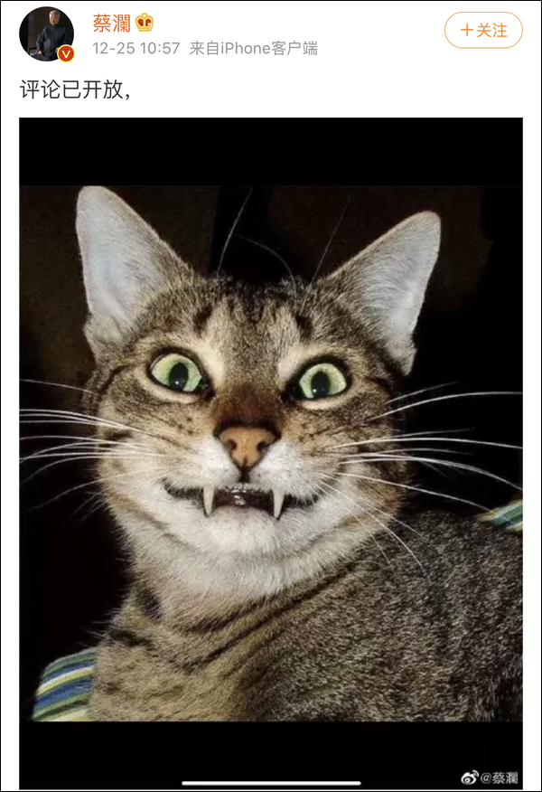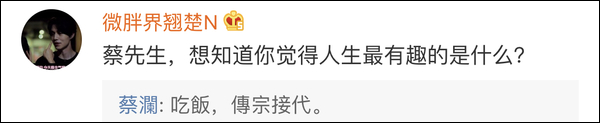 與網友的互動中,蔡網紅變身段子手,幾乎逐條回覆,言簡意賅,亮點滿滿。