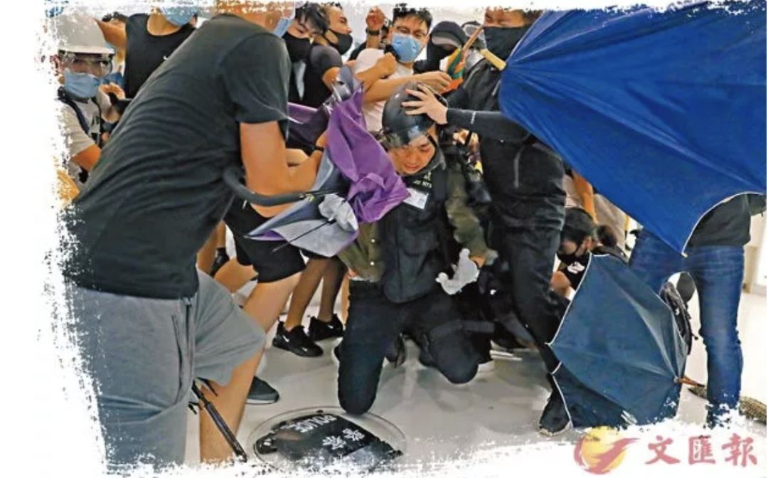 7月14日,暴徒在沙田一商場內瘋狂攻擊一名落單警察 圖源:香港文匯報