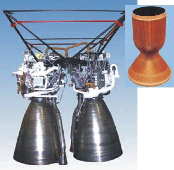 長征三號運載火箭第三級所使用的YF-73氫氧發動機,由1台渦輪泵和4個獨立的推力室並聯組成,4個推力室同在一個圓周,呈“十”字形安裝在發動機機架上,每個推力室都可沿圓周切向擺動,以控制飛行姿態,可以兩次點火工作。