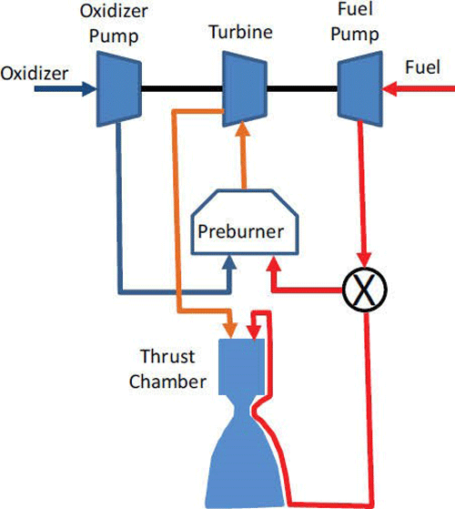 高壓補燃循環,預燃室中氧氣充足,排氣驅動渦輪泵後,全部注入燃燒室