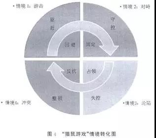 借用戰爭隱喻術語,[50]“貓鼠遊戲”有四個情境: