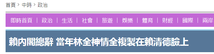 如今,賴清德請辭,蘇貞昌接任,有台媒同樣關注記者會上賴清德的表情。台灣“中時電子報”11日報道稱,蔡英文與賴清德、蘇貞昌在蔡辦同台,一年多前同樣場景、一樣記者會。當天即將卸任的“閣揆”林全輕鬆神情,今天全部複製在賴清德臉上。