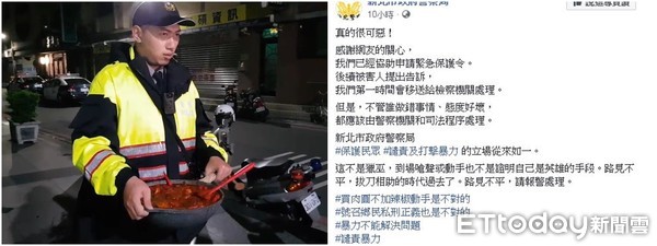 對此情況,新北警方14日晚間在臉譜網(facebook)上指出,“真的很可惡!感謝網友的關心,我們已經協助申請‘緊急保護令’,後續被害人提出告訴,我們第一時間會移送給檢察機關處理。但是,不管誰做錯事情、態度好壞,都應該由警察機關和‘司法’程序處理。新北市政府警察局保護民眾、譴責及打擊暴力的立場從來如一。”