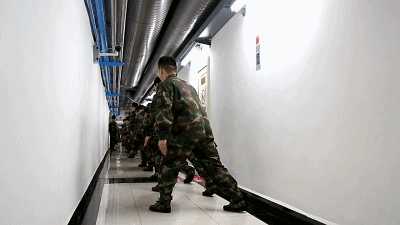 才跑了幾趟,已經喘不上氣了,我體力還可以,但是呢,我們火箭軍某旅的戰友們,他們的戰位就是在這個坑道里,每天這樣的訓練這樣的戰備訓練都要進行,就是要保證能夠一聲令下隨時應戰,今天我的戰位就是在這裏,在坑道里。