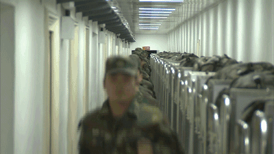 採訪呢,已經結束,但是呢,戰士們準備打仗的這種狀態呢,仍在繼續,他們告訴我,只要進了坑道,打仗的這根弦時刻緊繃着,在這裏,坐、卧、行、立,都是為了這兩個字“打贏”!