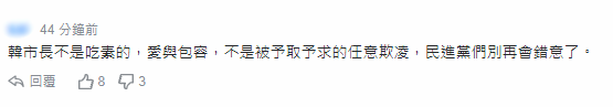 也有人認為韓國瑜不是吃素的,並對民進黨發出警告↓