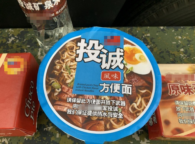 【環球時報綜合報道】如果兩岸開戰,台軍有什麼特別的威脅手段?他們的答案是,靠泡麪讓對岸投誠!近日,台軍公佈一系列“投誠食品”,在包裝上寫着“我們保證提供熱水與安全”等宣傳語。這一“腦洞大開”的做法讓島內網民吐槽:“解放軍看到‘投誠方便麪’時,已經取得制空、制海權,而且登陸成功,想‘投誠’的是誰?”