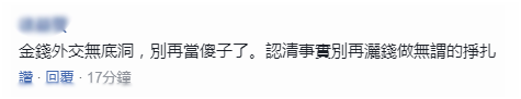 至於所羅門羣島轉向中國大陸的考慮期限,所羅門當地媒體《所羅門時報》5日曾報道稱,所羅門羣島外交部長馬內利(Jeremiah Manele)透露,將在100天內決定是否與台灣“斷交”,轉而與中國大陸建交。當時有島內網友發言認為,台當局的所謂“邦交”就是“金錢外交”,並勸告“認清事實別再做無謂的掙扎”↓