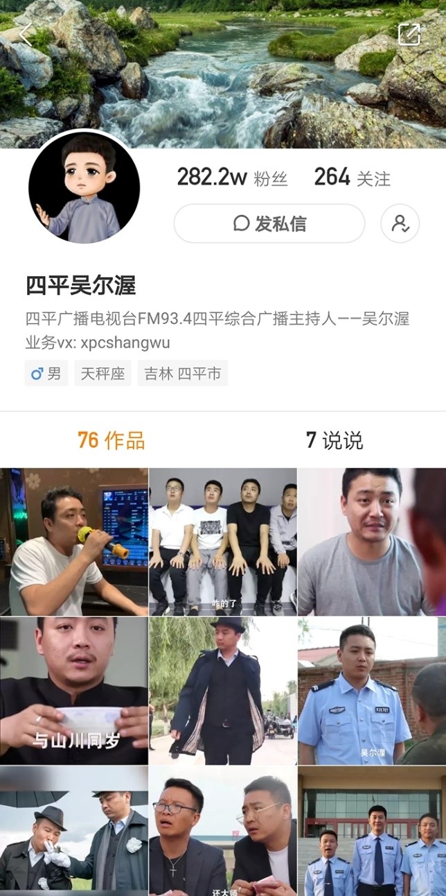 不止是草根愛表演,電台主持人也想與草根演員“分一杯羹”。土生土長在吉林省的“四平青年”吳爾渥(快手ID:wuxiansheng1007)在四平廣播電視台工作,但天生“表演上癮”的他,卻在快手拍起了“段子”。將普發和短視頻聯繫起來,把原本嚴肅的事兒變得有趣,普法+短視頻的新形式受到了全網的關注,而吳爾渥也正在通過另一種方式接觸自己熱愛的表演。