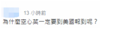 對於蔡英文意圖“過境”美國一事,有網友不解質問,為什麼“空心菜”一定要到美國報到呢?↓