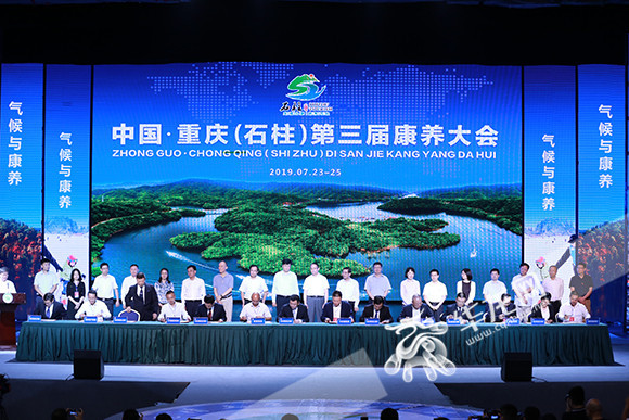 7月23日下午15時許,由民革中央、重慶市政協主辦,重慶市文化旅遊委、重慶市衞生健康委、重慶市氣象局、重慶醫科大學、中共石柱土家族自治縣委、石柱土家族自治縣人民政府承辦,以“氣候與康養”為主題的中國·重慶(石柱)第三屆康養大會在石柱縣天上黃水大劇院隆重開幕。來自全國政協、民革中央、國家有關部委以及重慶市各相關單位、區縣的領導和嘉賓,與山東、湖北、四川等省區市、全國各高校、各相關產業的專家學者、企業代表齊聚一堂,共商康養產業發展大計,見證“中國(重慶)氣候旅遊目的地”的綠色崛起。