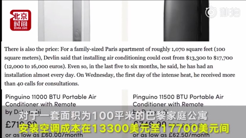 在歐洲,空調簡直算是奢侈品,根據英國價格比對網站PriceSpy數據顯示,依照牌子不同,一台便攜式空調的價格從200歐元至700多歐元不等,而今年由於高温,英國空調價格又上漲了40%之多。