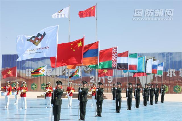 儀式開始後,在現場觀眾的熱烈歡呼聲中,中華人民共和國國旗和國際軍事比賽的會旗冉冉升起。隨後,在鮮豔的會旗引導下,各參賽國官兵踏着鏗鏘的《運動員進行曲》,軍容嚴整、軍姿挺拔走進會場。今年,中國陸軍共承辦“蘇沃洛夫突擊”步戰車組、“晴空”便攜式防空導彈班組、“安全環境”核生化偵察組和“軍械能手”武器修理班組4項比賽,參賽隊員分別來自亞洲、歐洲、非洲、南美洲4大洲12個國家。在接下來的12天裏,不同膚色的陸軍精英們沙場競技、巔峯對戰,將為大家帶來精彩絕倫的軍事比賽盛宴。