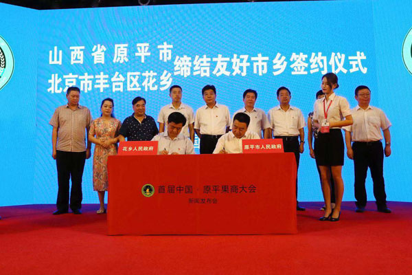 8月3日,首屆中國•原平果商大會新聞發佈會在素有北京市“菜籃子”、“果盤子”之稱的新發地隆重舉行,原平市政府與花鄉鄉政府簽署了友好合作協議。來自山西省原平市、北京市豐台區花鄉、新發地村,新發地農產品批發市場和四十家新聞媒體的記者等有關單位共計150餘人參加了本次發佈會。