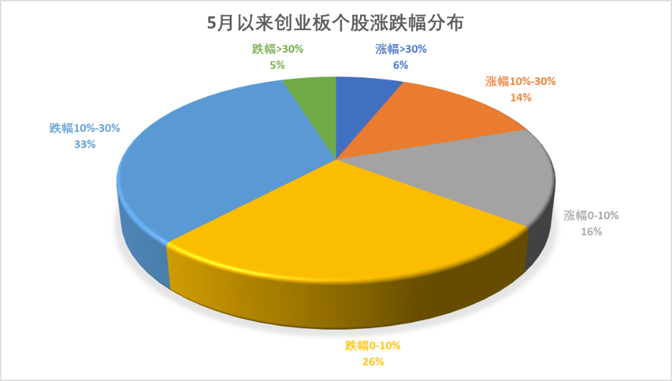 中證網訊 8月19日,市場受多重利好刺激放量上漲,創業板指更是大漲3.50%,收於1622.84點,四月底後首度站上1600點。表面上看,創業板指時隔3個多月後重回原點,但個股走勢卻大相徑庭,股價結構出現了明顯的變化。據Wind數據統計,同期創業板個股僅不足四成上漲,逾六成股票“掉隊”,36只股價跌幅超過30%。