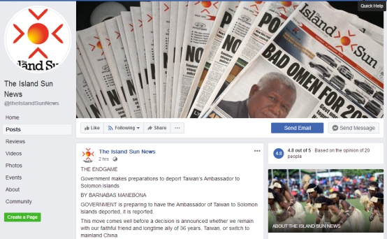 【環球網綜合報道】所羅門羣島當地媒體《島嶼太陽報》(Island Sun)今日(16日)在臉書刊出一則報道,爆料説“所政府正準備驅逐台灣駐所羅門‘大使’廖文哲”,並稱“廖文哲干預所羅門羣島的內政”。