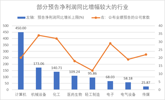 排名三、四位的均為計算機企業。視頻安全設備製造商同為股份預計實現淨利潤1700 ~2500萬元,增長4362.78~6098.31%。業績增長主因為產品銷售結構發生變化及匯率的變動導致毛利率提升,毛利增加。專注於公用事業信息化技術的朗新科技預告淨利潤55800 ~56400萬元,增長2383.07~2409.77%,旗下的邦道科技和易視騰科技利潤大幅增長對母公司利潤貢獻較大。