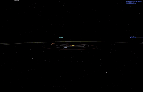 “彗星的當前速度很快,大約以93000英里/小時(150000公里/小時),遠高於在該距離繞太陽運行的天體的典型速度,”美國宇航局近地天體研究中心的Davide Farnocchia説道。“高速度不僅表明天體可能來自我們太陽系外部,而且表明它將離開並返回星際空間。”