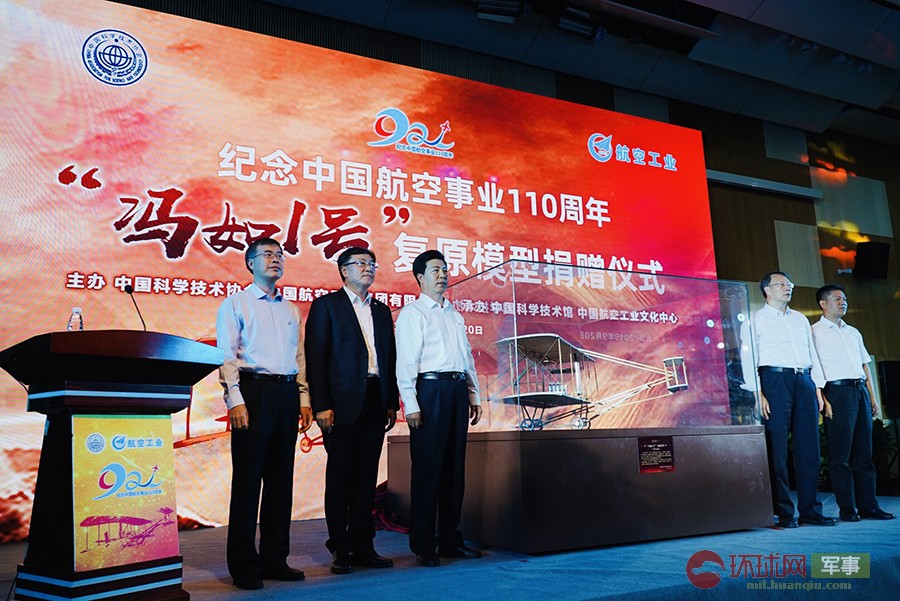 【環球網軍事報道】適逢中國航空事業110週年來臨之際,9月20日,航空工業在京舉行紀念中國航空事業110週年“馮如1號”復原模型捐贈儀式,將首個“馮如1號”1:4復原模型捐贈給中國科技館。本次活動旨在激發全民尤其是青少年崇尚科學、探索未知、敢於創新的熱情,為實現中華民族偉大復興的中國夢凝聚強大力量。儀式上,中國科協黨組成員、中國科技館館長殷皓,航空工業紀檢監察組組長、黨組成員任玉琨等共同為“馮如1號”復原模型揭幕。