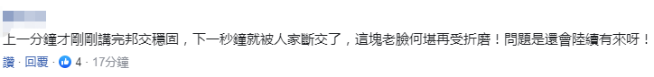 更有人諷刺稱,剛講完“邦交穩固”然後就“斷交”,吳釗燮“這塊老臉何堪再受折磨”。