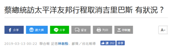 實際上,台媒早前就曾在報道中對基里巴斯與台當局關係提出懷疑。據台灣《聯合報》報道,今年3月,蔡英文“出訪”太平洋所謂的“友邦”,原訂要訪問基里巴斯的行程最後取消,台“外交部”當時稱因時程配合的技術性問題。而《聯合報》則在報道中提出質疑,“有狀況?”