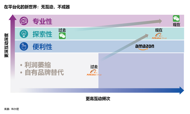 與傳統消費品品牌與消費者的溝通模型截然不同,平台具有以多向價值創造為導向、以用户為中心、以擴張網絡效應為重點的特徵。消費者作為消費品行業平台化的核心,他們對於新興模式的訴求包括了連接性、信任和熟悉度,這些訴求奠定了消費者平台迅猛發展的基礎 。