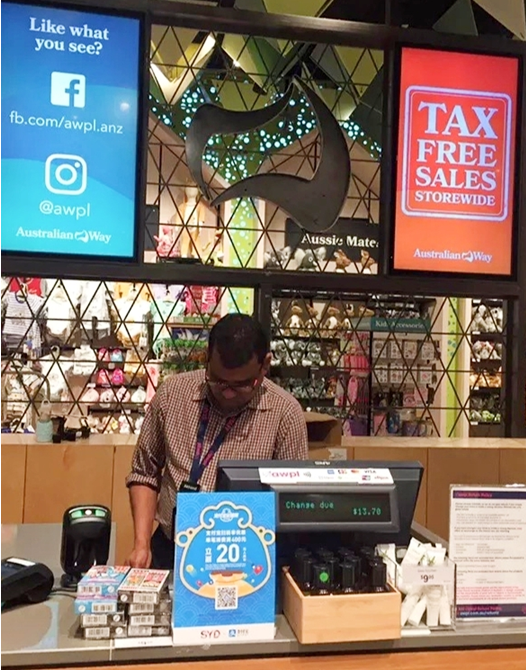 在澳大利亞,迎“十一”樂天免税店不僅從布里斯班機場開始就送澳洲蜂蜜,還有支付寶買單最低6折。店方還趕在節前專門升級了二維碼掃描儀等硬件設備,以便更好配合中國式移動支付。店方負責人張桐浩説,因為現在超過七成的中國顧客,在買單前都會先問一句:“能不能用支付寶?”