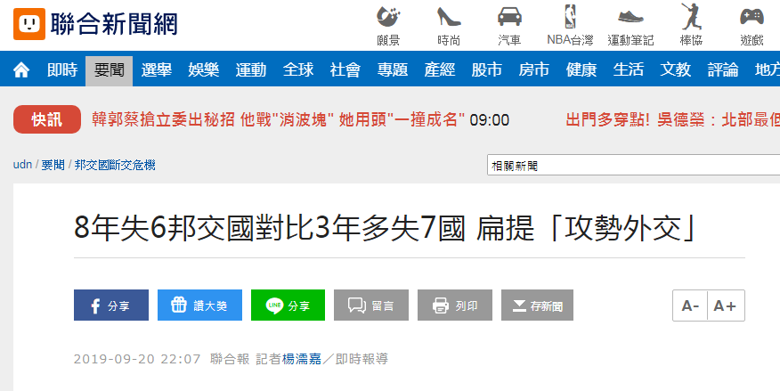 據台灣《聯合報》21日報道,陳水扁指責蔡英文稱,台灣在南太平洋所謂“友邦”中,繼9月16日所羅門羣島跟台“斷交”後,短短5天又失去另一個“邦交國”-基里巴斯,台“邦交國”降為15國,在南太平洋的“邦交國”也從6國減剩4國。蔡英文自2016年就任以來,3年4個月“斷交”7國,而且都是各地人口最多或是戰略位置最重要的國家。