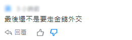 對此,島內網友批評稱,最後還不是要走“金援外交”?↓