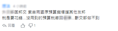 有網友諷刺稱,就是要花錢,沒用到的預算就繳回,“斷交部”做不到↓