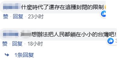 還有網友稱,“什麼時代了還存在這種封閉的限制”;還有人説,當局想辦法把民眾都鎖在小小的台灣吧!