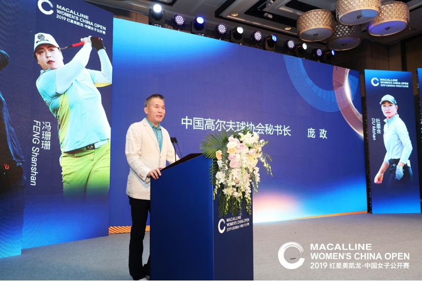 中國高爾夫球協會秘書長龐政致辭,他提出體育產業是國家發展戰略,中國女子公開賽是中高協在高爾夫球領域探索體育賽事職業化的重要事件。他表示,中高協將以深化改革為契機,廣泛聯合社會力量,激發市場活力,着力推動高爾夫球賽職業化和高爾夫產業的發展。