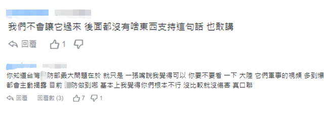 對於嚴德發所謂的"我們不會讓它過來",台灣網友諷刺稱,“後面都沒有啥東西支持這句話, 也敢講”;台灣防務就一張嘴,沒有比較就沒有傷害。↓