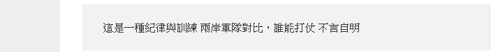 台灣《聯合報》則從現場聽到多首震撼的樂曲,稱讚“氣勢頗為驚人,屆時軍樂團將帶動現場觀眾更熱烈的氣氛。”官兵也通過了“高温和體力的考驗”。