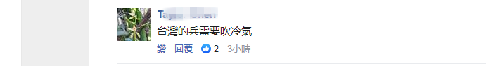 有台網友順勢搬出了“台灣的兵需要吹冷氣”的梗。原來,今年夏天,島內部分地區時常飆高温,台軍被曝有士兵在進行體能檢測時發生“熱傷害”,台軍因為天熱而暫停體測,此事在島內引起嘲諷。