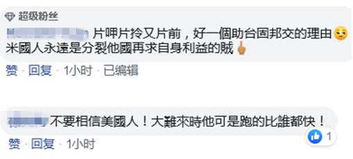 至於美參議院外委會的這一做法,網友則諷刺稱,“好一個助台固邦交的理由,米國人永遠是分裂他國再求自身利益的賊。”有網友呼籲,“不要相信美國人!大難來時他可是跑的比誰都快!”↓