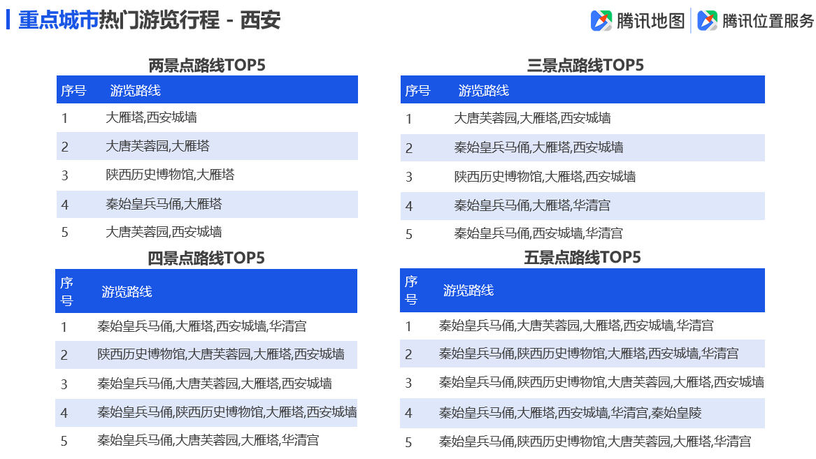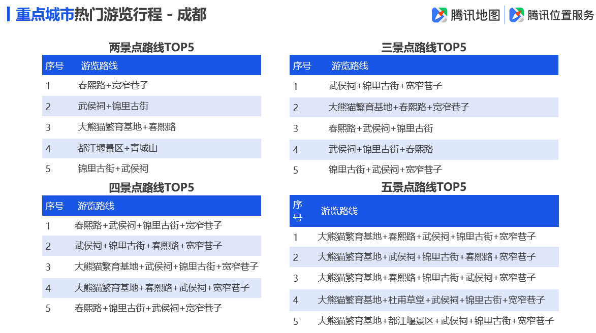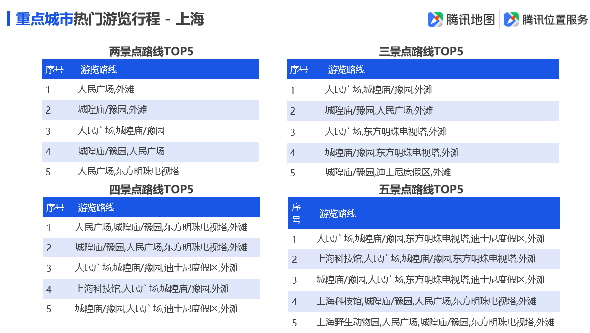為了幫助遊客合理做好出行計劃,高效遊覽熱門景點,在這份十一出行大數據報告中,騰訊地圖、騰訊位置服務專門針對遊客密集的北京、上海、成都、西安四大城市,分別擬定了20條不同的行程方案,遊客可以根據自己的出行時間、景點偏好自行選擇。