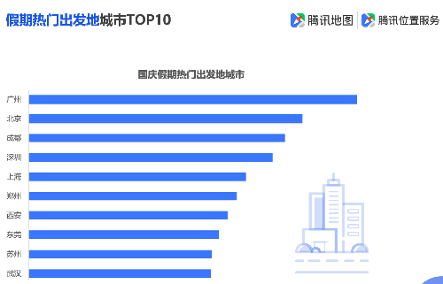 在出行目的地的選擇上,人們對於超一線城市的嚮往依然佔據上風,廣州、北京、深圳分列這次黃金週最熱門目的地前三位;其中廣州和北京不僅迎進來大量遊客,也送出去不少嚮往外面世界的人,在全國熱門出發城市前十位中,廣州和北京依然分列第一位和第二位,排在後面的依次為成都、深圳、上海等城市。