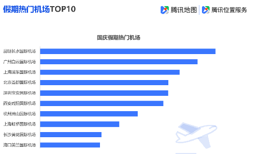 受旅遊客流影響,在航空運輸上,昆明長水國際機場力壓廣州、上海和北京,成為今年十一人流量最大的機場。黃金週期間各大機場每日客流高峯基本平穩,其中10月1日和7日客流稍高;航空出行的遊客更傾向於選擇11點-20點之間時段的航班,其中17點左右達到高峯。