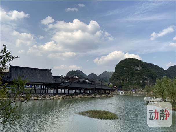從貴陽出發,一路向西,1個多小時的車程,就來到了位於織金縣城的平遠古鎮,這裏山巒疊嶂,流水潺潺,織金的八大景中,有四大景都在這裏——“金鐘撲地”、“三潭滾月”、“東寺晚鐘”、“穿洞流雲”,每一處景色都讓人心曠神怡。織金飯店投資建設公司的總經理陳開永向動靜記者介紹到,“從一開始就高標準,高定位,要以看得見山,望得見水,記得住鄉愁為原則,每一塊磚每一塊瓦,我們都是非常用心去做的。”