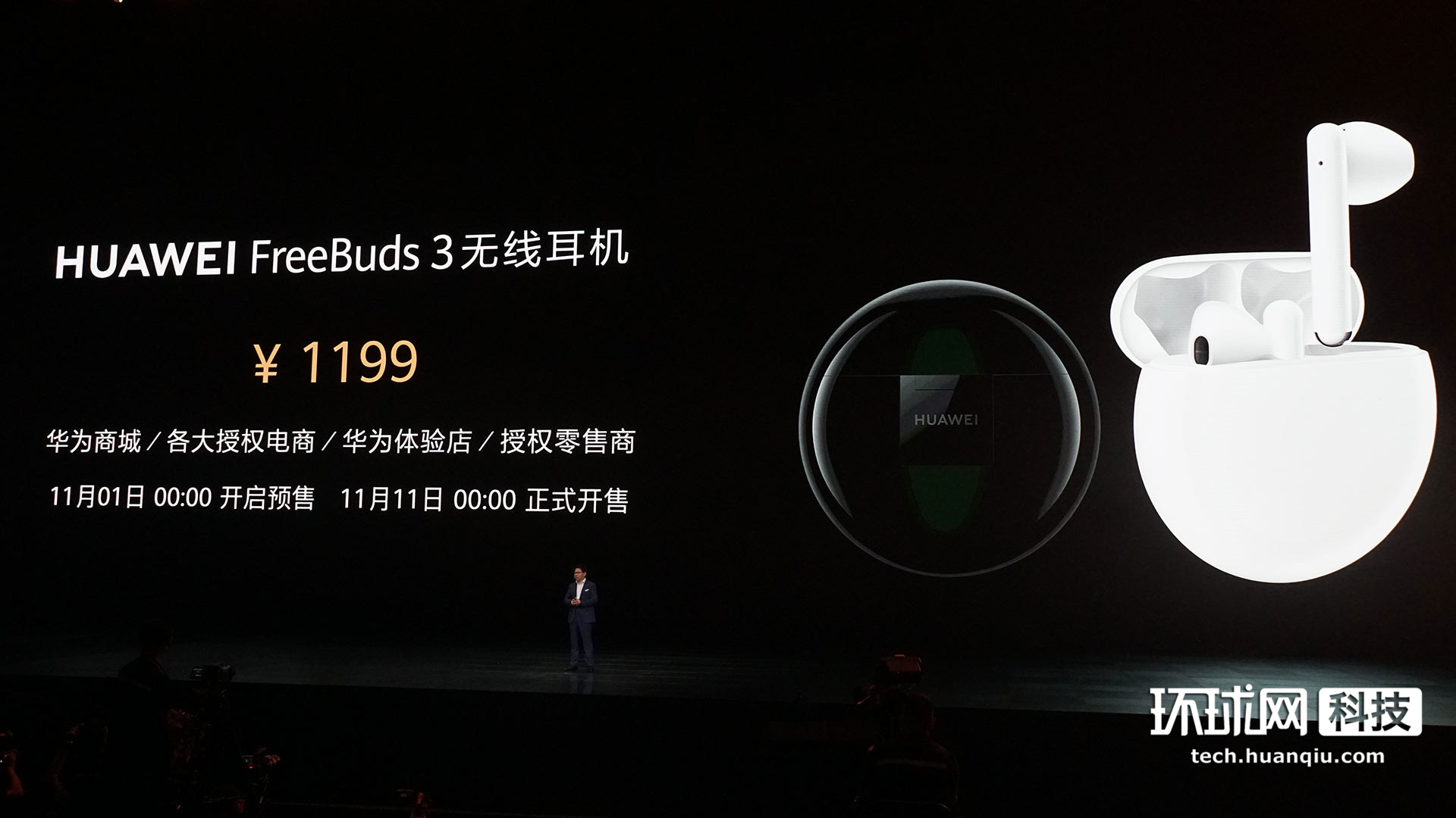 【環球網科技綜合報道】9月26日,在華為Mate30系列發佈會期間,華為正式面向國內發佈了TWS耳機新品華為Freebuds3,共有黑白兩種顏色可選,定價1199元。
