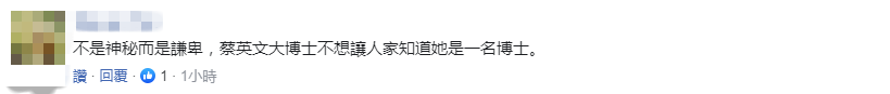 更有網友諷刺稱“不是神秘而是謙卑,人家蔡英文大博士不想讓大家知道她是一名博士。”